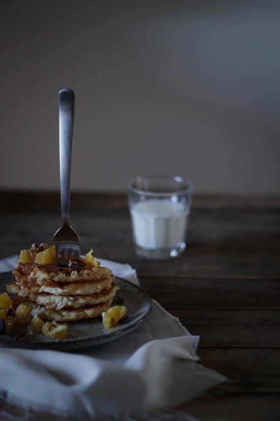 I år blev det en lækker udgave til morgenbordet. Med kokos, mandel og vanilje. Og frisk appelsinsalat. Og nej, mit overskud var ikke til at hive stegepanden frem ved syvtiden om morgenen - så meget overskudsmenneske er jeg ikke. Det blev "second breakfast" ved 10 tiden. Det vi almindelig dødelige kalder formiddagskaffe ;)