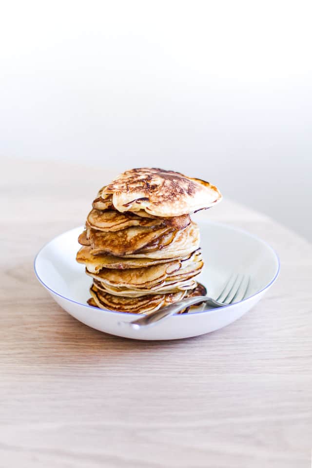 Yea, de her pandekager er lynhurtige at lave. Er man en af den med ekstra store øjne om morgenen, så klarer man da lige sådan en omgang til resten af huset.